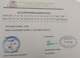 Metkei Girls Secondary School 2025 KCSE Result